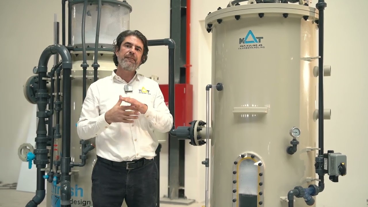 The Foam Extractor consists of a tower and a waste gas blower that forms the subpressure to pull the waste gas out of the tower column. The extractor inlet is secured against backflows and the water exit includes a siphon to ensure water is kept at the designed level.