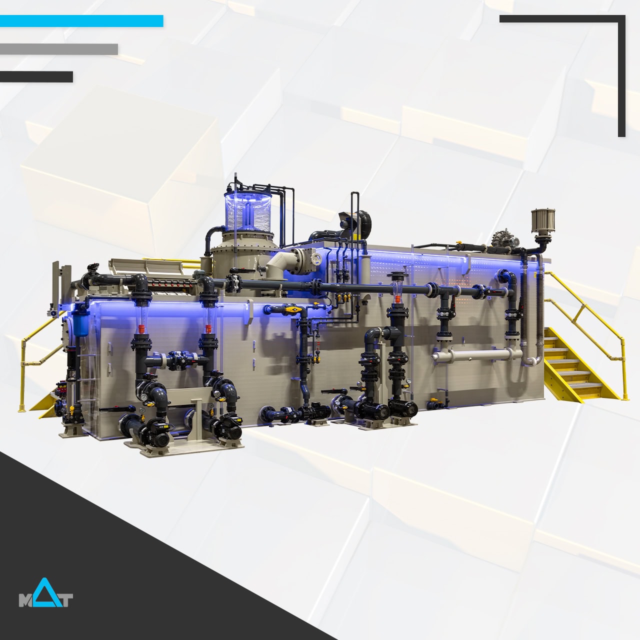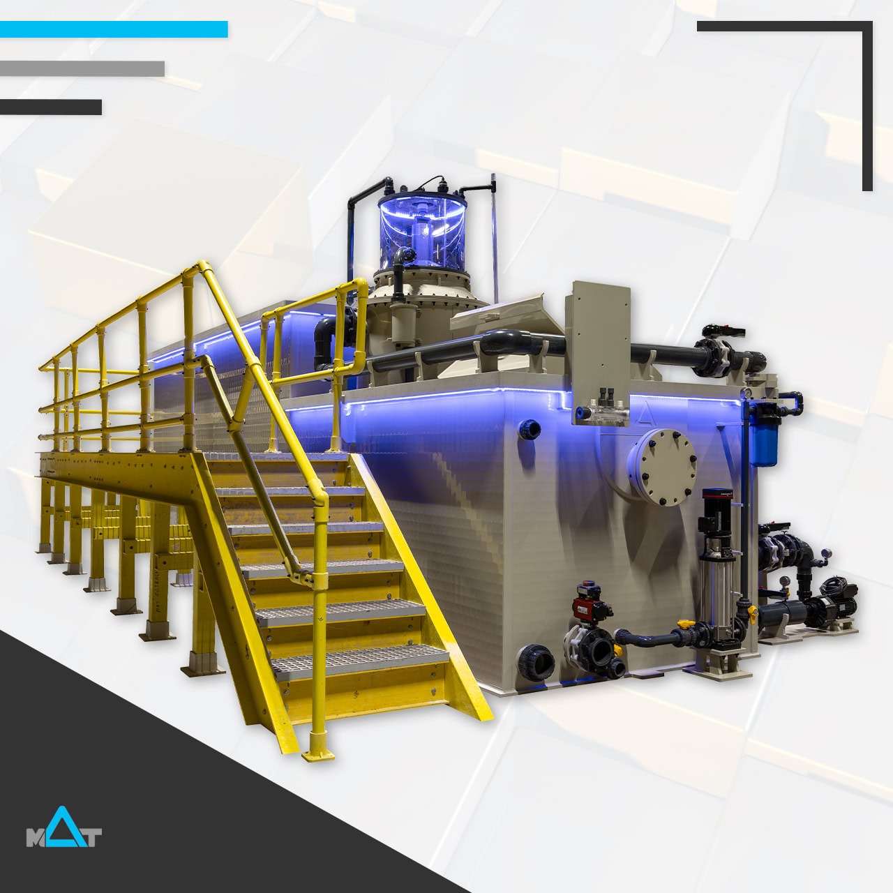 MAT-KULING SKID units cover a wide range of the Recirculated Aquaculture Systems applications. RAS Skid Unit forms a user-friendly plug and play system for Biological filtration, Protein skimming and ozone – UV disinfection.